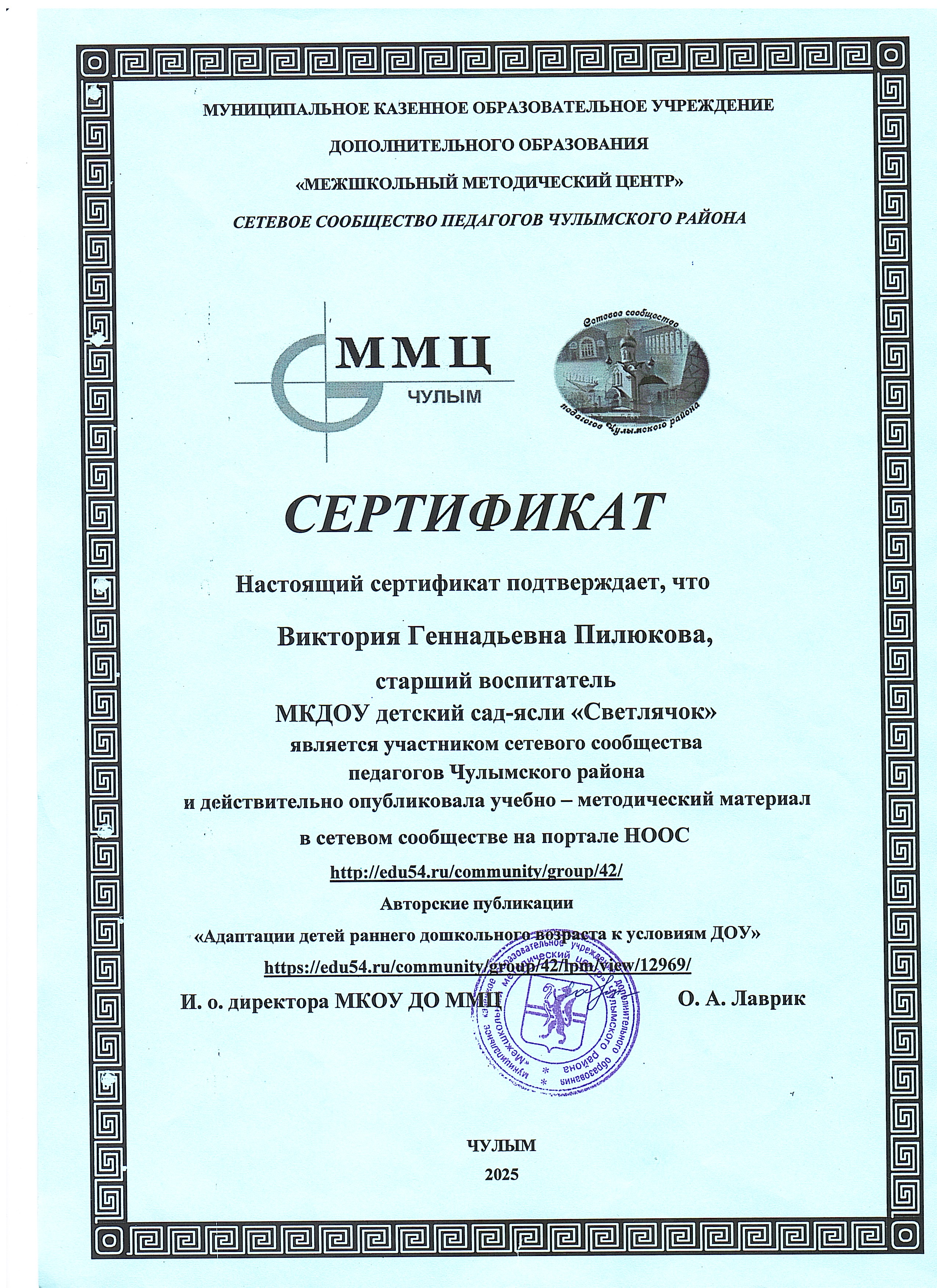 Сертификат публикации